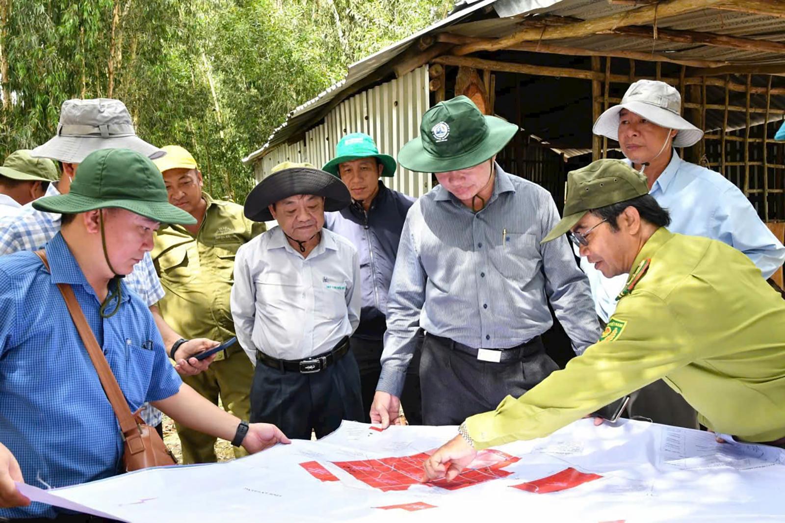 Ngành kiểm lâm tỉnh kiểm tra rừng. Ảnh: THÙY TRANG