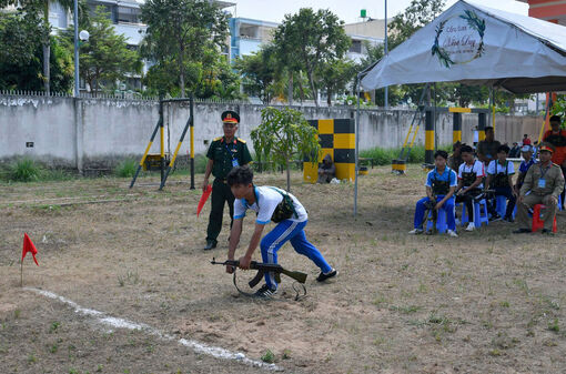 Dạy môn giáo dục quốc phòng, an ninh tại Trường Trung học phổ thông Tịnh Biên, phường Thới Sơn. Ảnh: GIA KHÁNH
