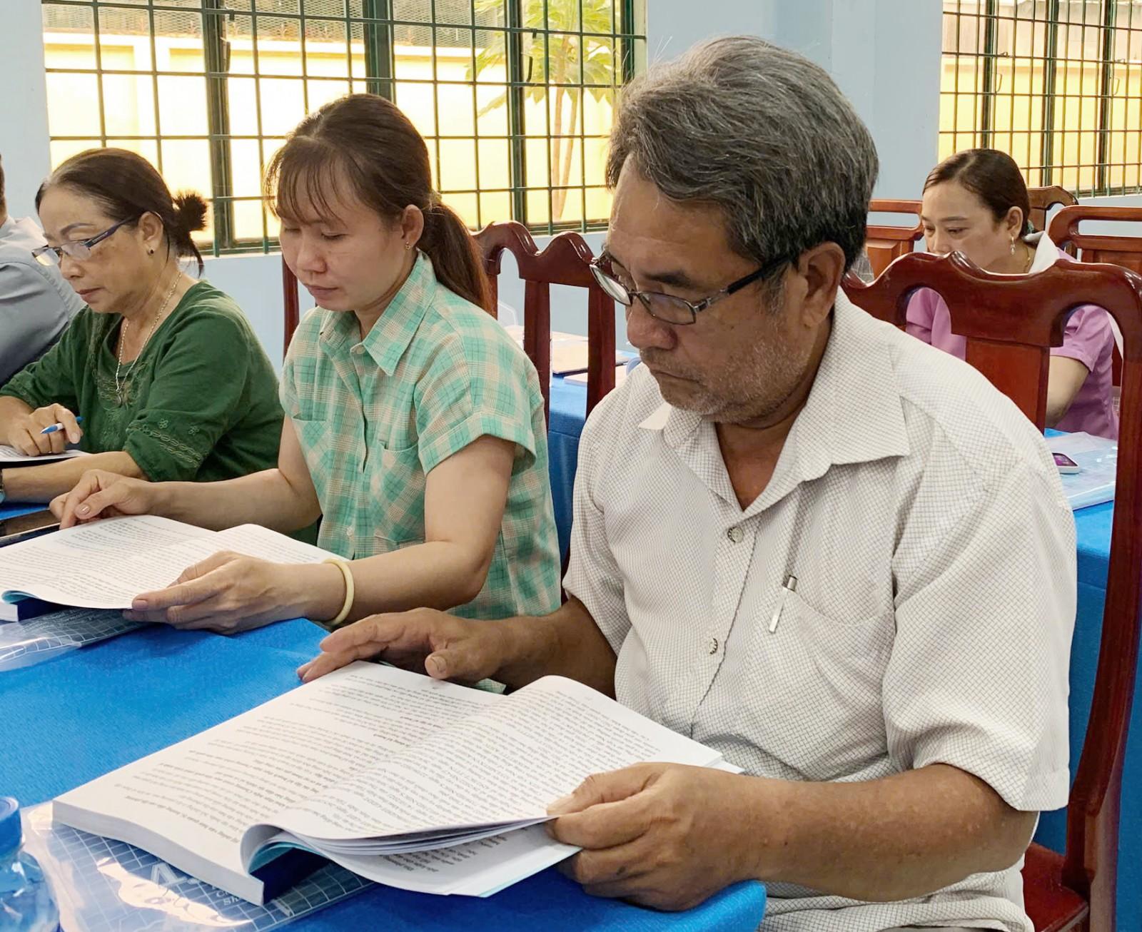 Các đại biểu nghiên cứu tài liệu tại hội nghị.