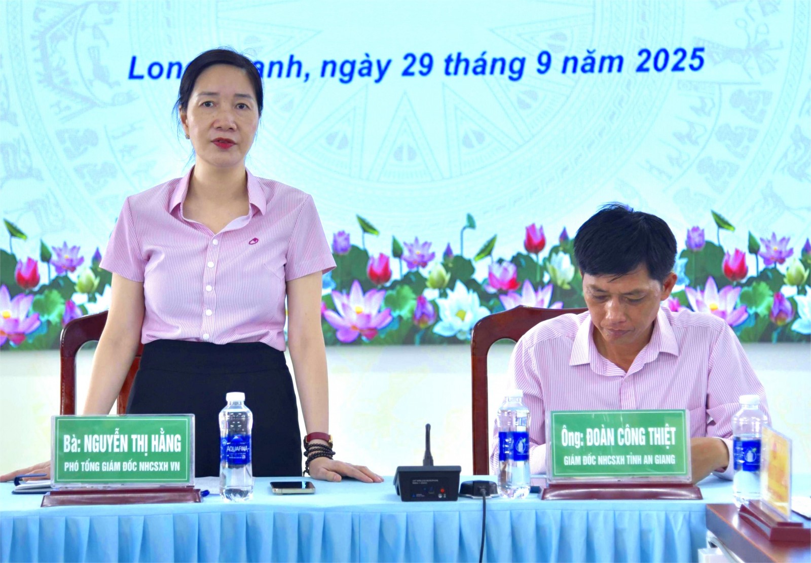 Phó Tổng Giám đốc Ngân hàng Chính sách xã hội Việt Nam Nguyễn Thị Hằng phát biểu chỉ đạo tại buổi làm việc với xã Long Thạnh.