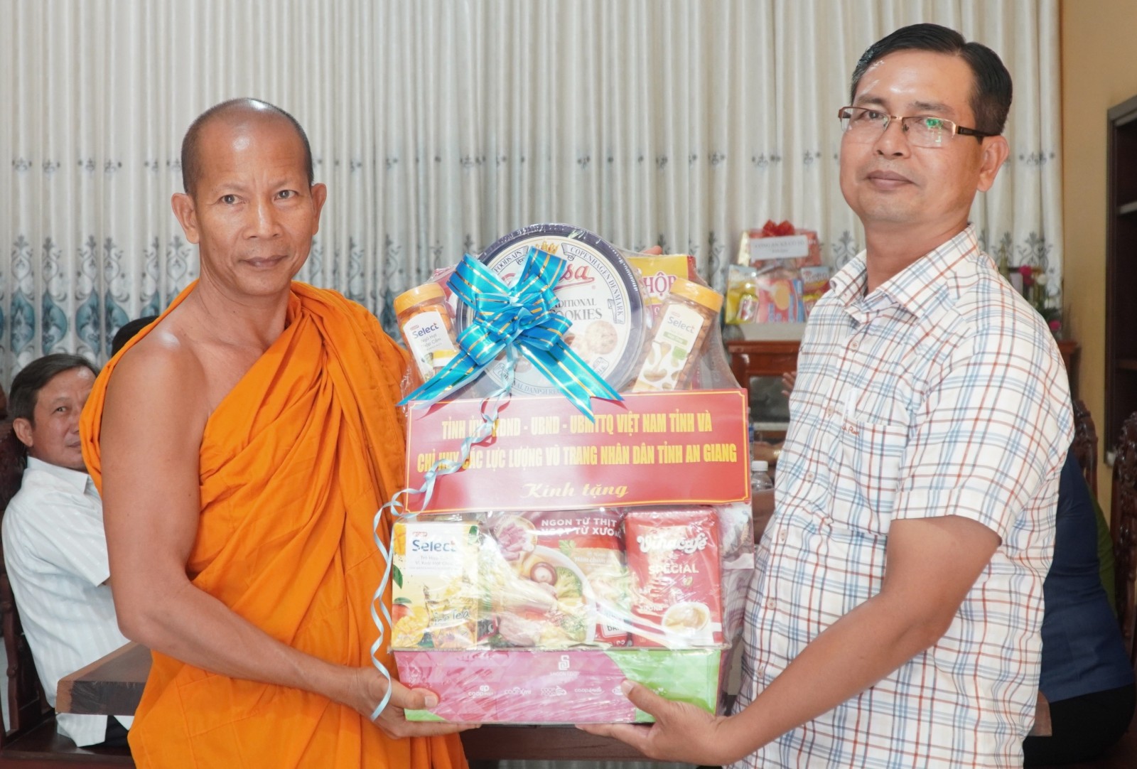 Tặng quà chùa Xoài Tà Som, xã Núi Cấm dịp Lễ Sene Đôn Ta.