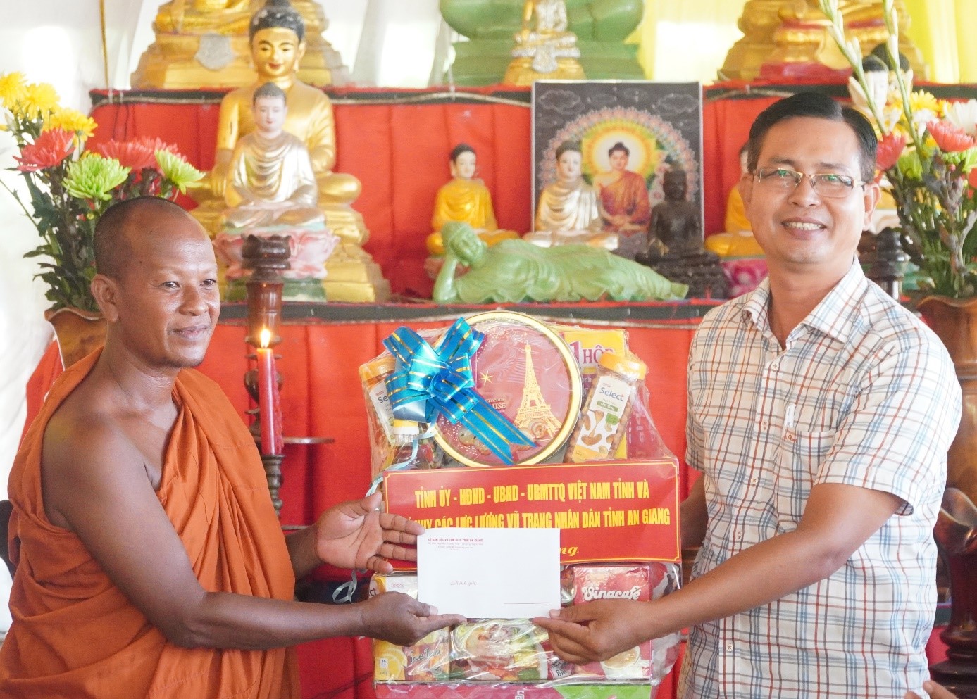Ngày 20/9, đoàn công tác do Phó Giám đốc Sở Dân tộc và Tôn giáo tỉnh An Giang Danh Tha làm trưởng đoàn đã đến thăm, tặng quà các chùa Nam tông Khmer, chức sắc tiêu biểu, cán bộ hưu trí trên địa bàn các xã: Ba Chúc, Núi Cấm, An Cư, Cô Tô dịp lễ Sene Đôn Ta năm 2025.