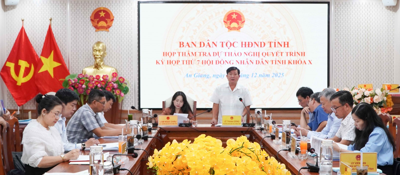 - Chiều 18/12, Ban Dân tộc HĐND tỉnh An Giang tổ chức cuộc họp để thẩm tra Tờ trình số 432/TTr-UBND, ngày 10/12/2025 của UBND tỉnh về dự thảo nghị quyết quy định mức chi hỗ trợ đóng mới ghe ngo truyền thống của đồng bào Khmer trên địa bàn tỉnh. Nội dung này sẽ được trình Kỳ họp thứ 7 (kỳ họp thường lệ cuối năm 2025) HĐND tỉnh khóa X.