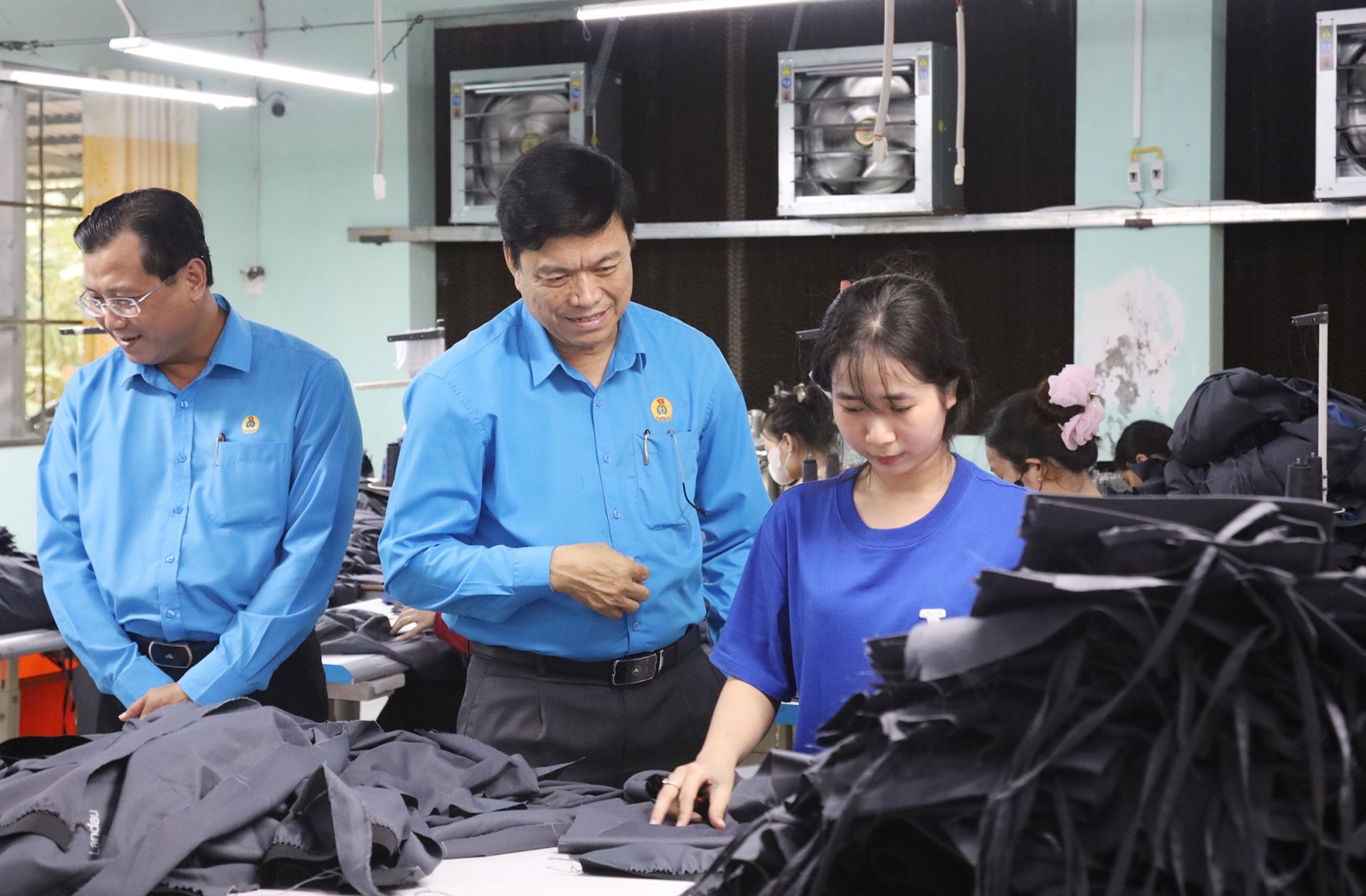 Lãnh đạo Liên đoàn Lao động tỉnh An Giang thăm hỏi đoàn viên Công đoàn cơ sở Chi nhánh Chợ Mới Công ty TNHH May mặc Lai Vung.