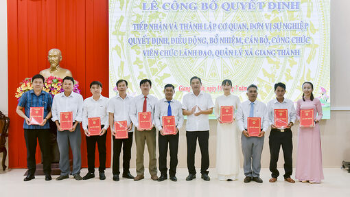 Cụ thể, UBND xã Giang Thành (tỉnh An Giang) quyết định thành lập Trung tâm cung ứng dịch vụ sự nghiệp công cơ bản gồm 10 viên chức; đồng thời, tiếp nhận 9 trường gồm 3 trường mầm non, 3 trường tiểu học, 3 trường trung học cơ sở trực thuộc UBND huyện Giang Thành (cũ). Chủ tịch UBND xã quyết định bổ nhiệm 9 hiệu trưởng và 7 phó hiệu trưởng.