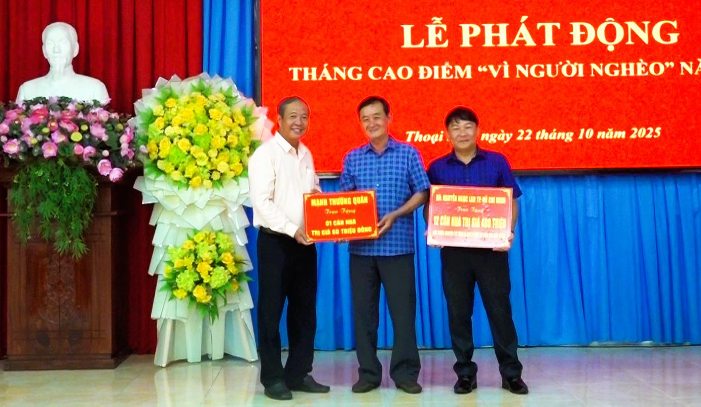 Từ tháng 7/2025 đến nay, thực hiện mô hình chính quyền địa phương hai cấp, xã Thoại Sơn tiếp nhận Quỹ Vì người nghèo hơn 1,6 tỷ đồng (tiền và hiện vật). Qua đó, đã chi cất mới 16 căn nhà Đại đoàn kết, tặng quà 2.638 lượt hộ nghèo, hộ khó khăn và trợ giúp 30 lượt học sinh nghèo hiếu học.