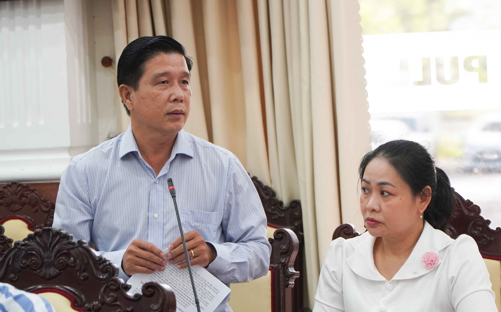 Ủy viên dự khuyết Ban Chấp hành Trung ương Đảng, Phó Bí thư Tỉnh ủy, Chủ tịch UBND tỉnh An Giang Hồ Văn Mừng quán triệt nội dung họp.