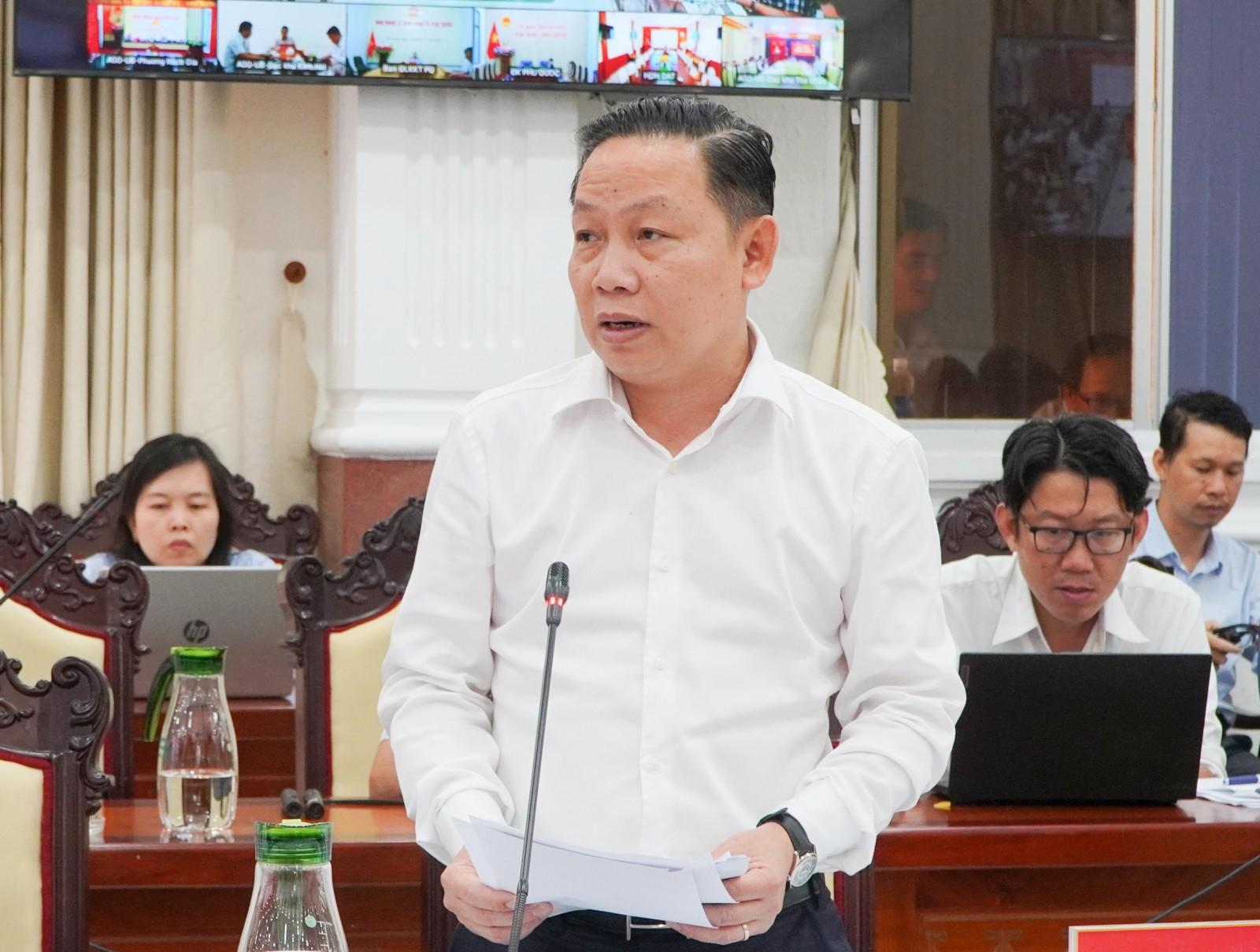 Cùng đó, Sở Nông nghiệp và Môi trường báo cáo xin ý kiến việc chuyển đổi đất rừng của dự án Khu đô thị Núi Ông Quán; báo cáo khó khăn, vướng mắc Bệnh viện Quốc tế Mặt trời Phú Quốc.
