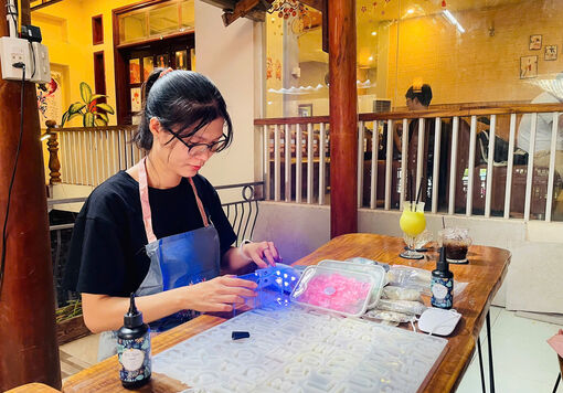 Vốn là nhân viên văn phòng, workshop làm đèn trang trí chỉ là công việc “tay trái” này được chị Chi nảy ra một cách tình cờ. “Giữa guồng quay của công việc chính và những áp lực thường nhật, tôi thấy nhu cầu có một không gian để thư giãn, thỏa sức sáng tạo và tìm lại cân bằng trong cuộc sống là cần thiết. Nhiều người đồng quan niệm này nên lượng khách đến workshop hằng tuần khoảng 10 người. Mới bắt đầu, được mọi người ủng hộ như thế là tín hiệu vui”, chị Kim Chi nói.