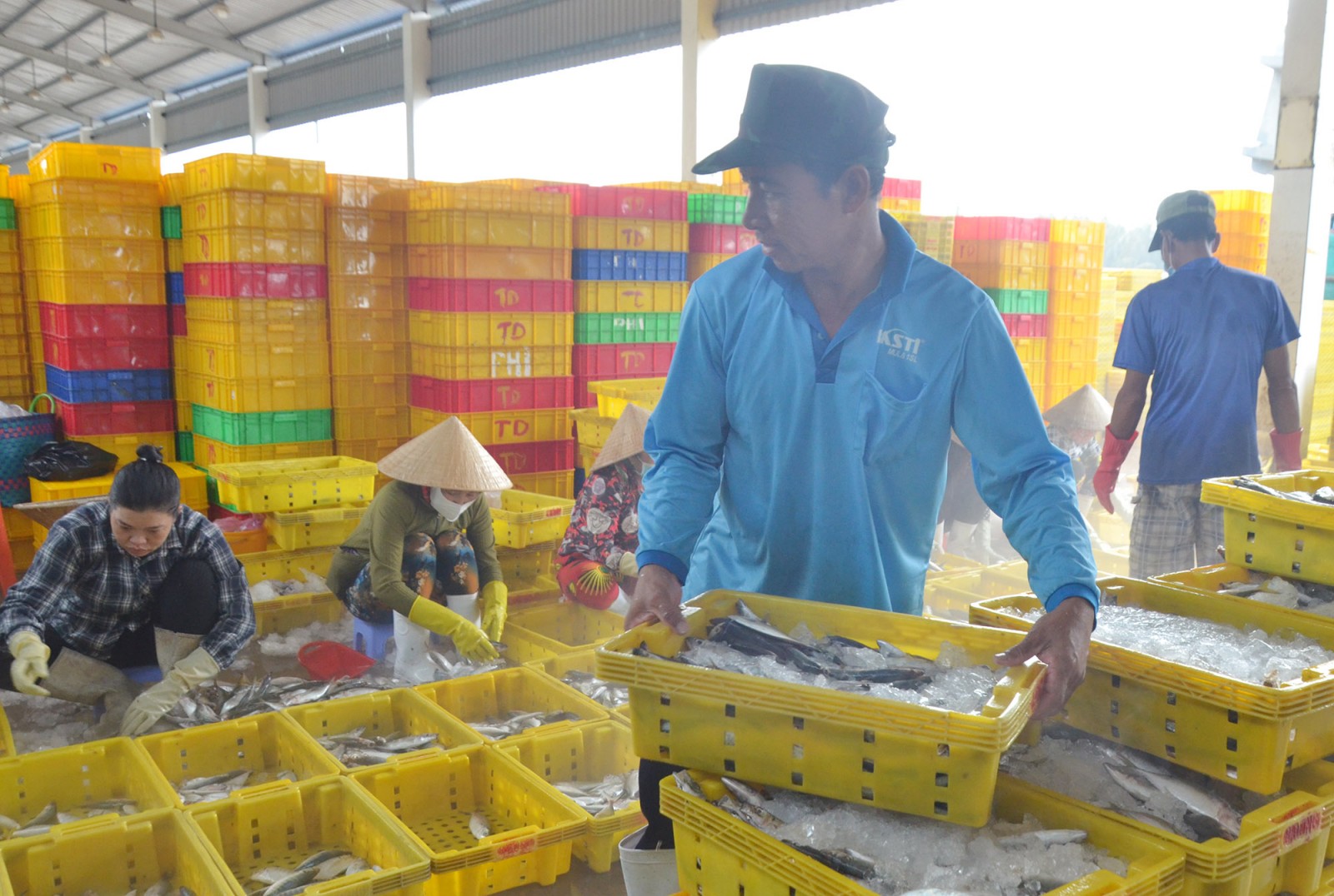 Phân loại cá tại cảng cá Tắc Cậu, tỉnh An Giang.