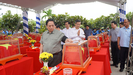 Ủy viên Bộ Chính trị, Thủ tướng Chính phủ Phạm Minh Chính tiễn đưa hài cốt liệt sĩ về đất mẹ