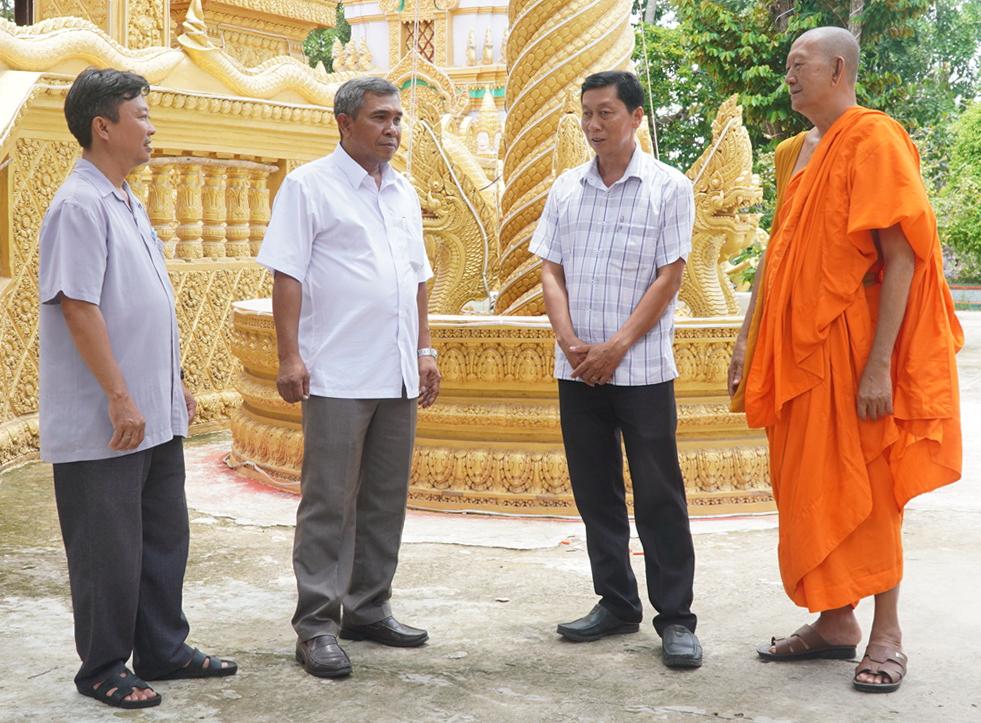 Hòa thượng Chau Cắt trao đổi thông tin về đời sống đồng bào Khmer phường Chi Lăng với lãnh đạo Sở Dân tộc và Tôn giáo. Ảnh: DANH THÀNH