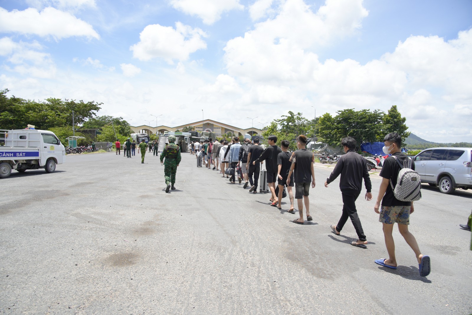 Trưa 12/8, tại Cửa khẩu quốc tế Tịnh Biên (tỉnh An Giang), Đồn Biên phòng Cửa khẩu quốc tế Tịnh Biên (Ban Chỉ huy Bộ đội Biên phòng tỉnh An Giang) phối hợp các lực lượng chức năng tiếp nhận 72 công dân Việt Nam được Campuchia trao trả.