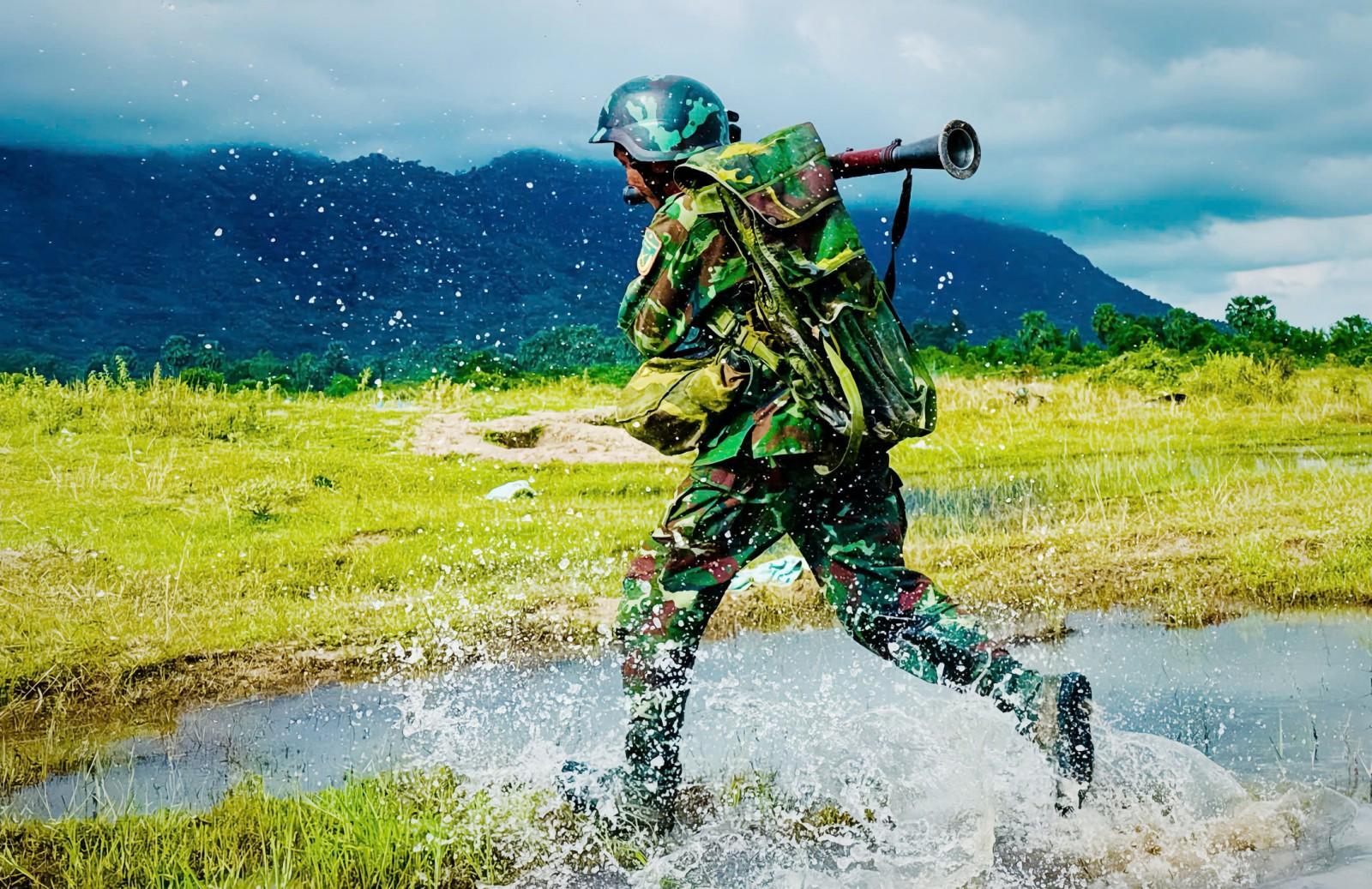Chiến sĩ B41 diễn tập tham gia hỏa lực chuẩn bị mở cửa đánh chiếm.