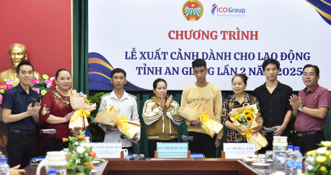 Sáng 18/9, Công ty Cổ phần Giáo dục quốc tế Capeco chi nhánh Kiên Giang (ICO Kiên Giang) phối hợp Trung tâm Hỗ trợ nông dân và Giáo dục nghề nghiệp tỉnh An Giang tổ chức lễ xuất cảnh cho 4 lao động sang làm việc tại Nhật Bản và 2 sinh viên đại học hệ vừa học vừa làm tại Đài Loan.
