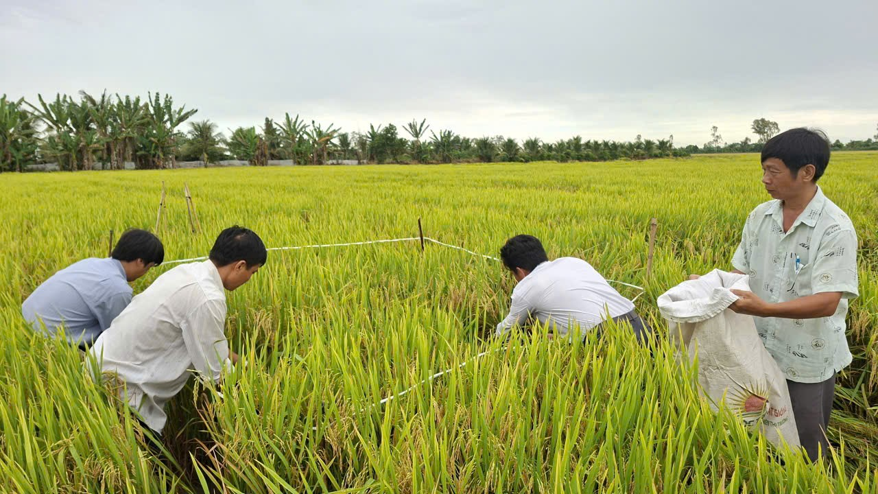 Mô hình được triển khai tại hộ ông Nguyễn Văn Tâm, ngụ ấp Vĩnh Nhuận, xã Vĩnh Hanh, với quy mô 5ha, gieo sạ ngày 27/7/2025 bằng thiết bị bay không người lái (drone), thu hoạch ngày 6/11/2025. Mô hình sử dụng giống OM 5451, mật độ gieo sạ 80kg/ha, sử dụng drone trong gieo sạ, bón phân, phun thuốc; ứng dụng kỹ thuật tưới nước theo phương pháp ngập - khô xen kẽ. Đồng thời, áp dụng kỹ thuật bón phân cân đối, bón đúng thời điểm và sử dụng biểu đồ so màu lá để xác định nhu cầu dinh dưỡng của cây lúa.