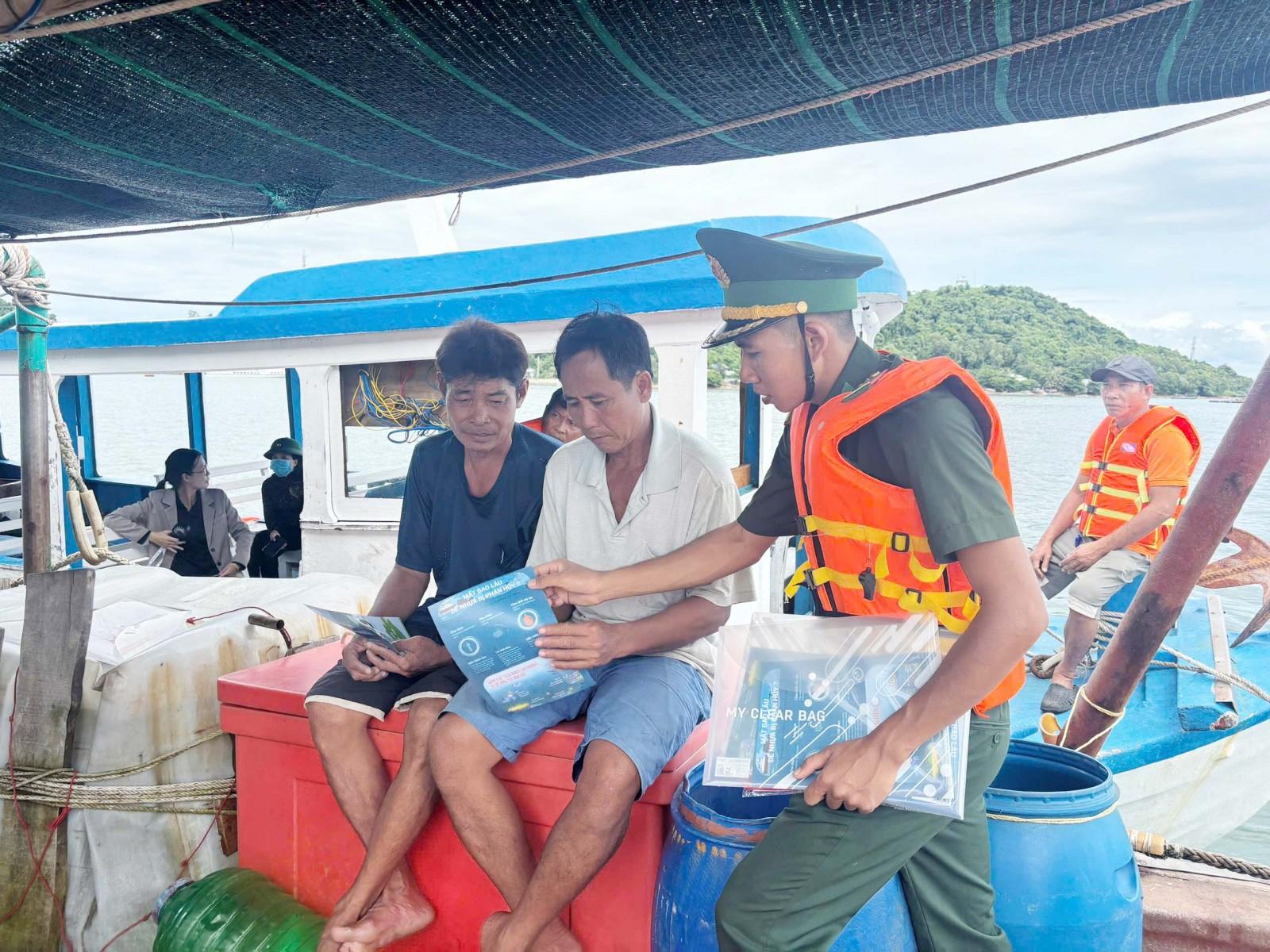 Đơn vị còn phối hợp Hội Liên hiệp Phụ nữ xã tuyên truyền, vận động trực tiếp cho 100 hộ dân, phát 500 tờ tuyên truyền về thu gom, xử lý, giảm rác thải nhựa, bảo vệ nguồn nước và tặng 50 sọt đựng rác cho các hộ dân nuôi cá lồng bè, khai thác hải sản.