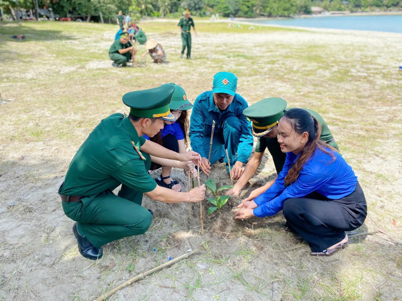 Sau buổi tuyên truyền tập trung, Đồn Biên phòng Tiên Hải phối hợp Hội Cựu chiến binh, Hội Liên hiệp Phụ nữ, Xã đoàn, Công an, quân sự xã và Nhân dân trồng 150 cây bàng vuông để thực hiện công trình “Hàng cây Bàng xanh - Dấu ấn Tiên Hải” tại bãi Bắc - bãi tắm duy nhất trên đảo Hòn Tre, xã Tiên Hải.