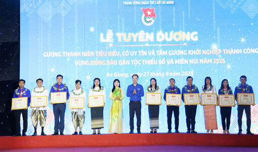 Tối 27/9, tại Quảng trường Thái Quốc Hùng, xã Tri Tôn (tỉnh An Giang), Trung ương Đoàn Thanh niên Cộng sản Hồ Chí Minh tổ chức lễ tuyên dương gương thanh niên tiêu biểu, có uy tín, tấm gương khởi nghiệp thành công ở vùng đồng bào dân tộc thiểu số miền núi năm 2025 - cụm Tây Nam Bộ.