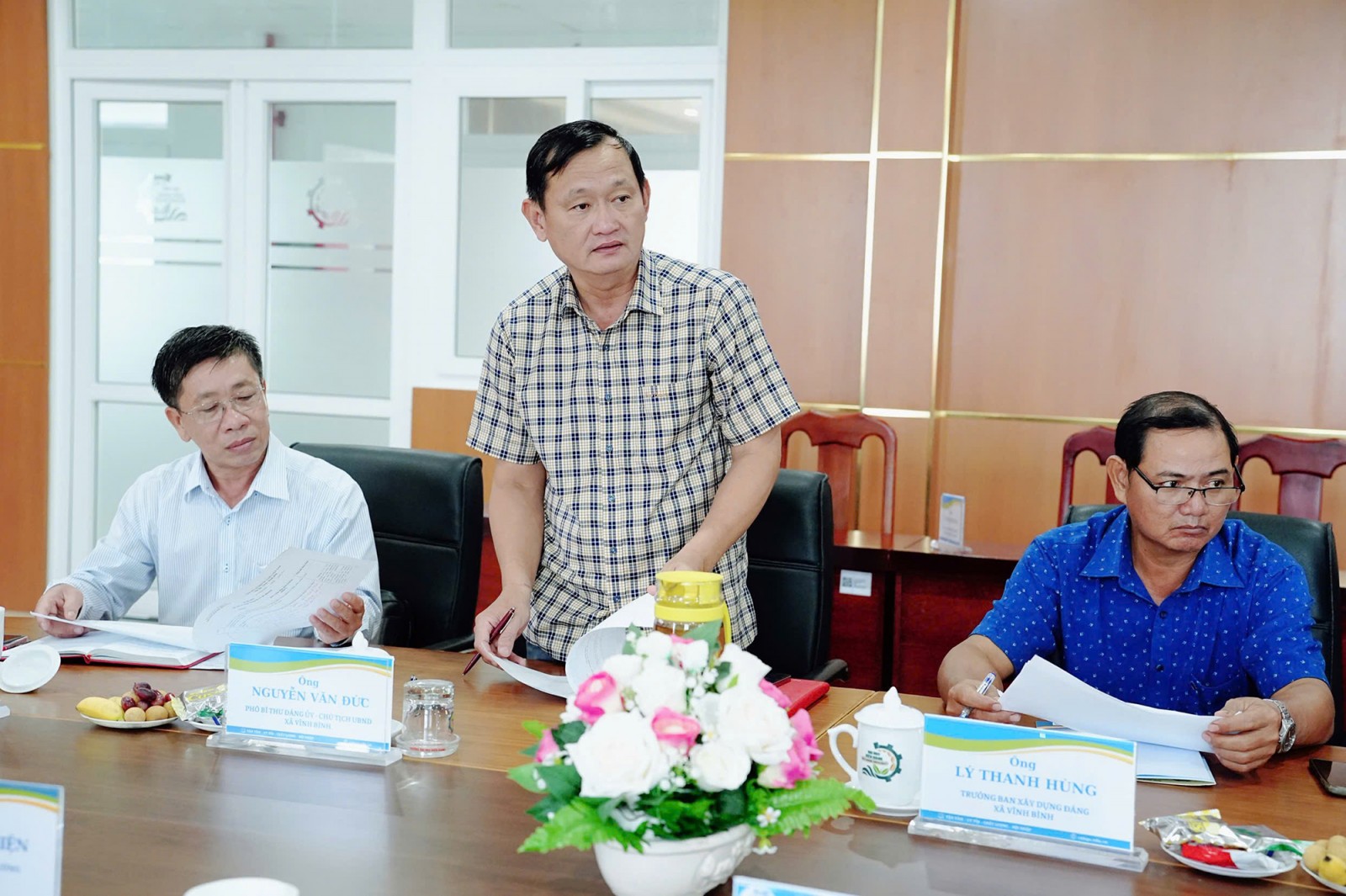 Phó Bí thư Đảng ủy, Chủ tịch UBND xã Vĩnh Bình Nguyễn Văn Đức trao đổi tại buổi làm việc.