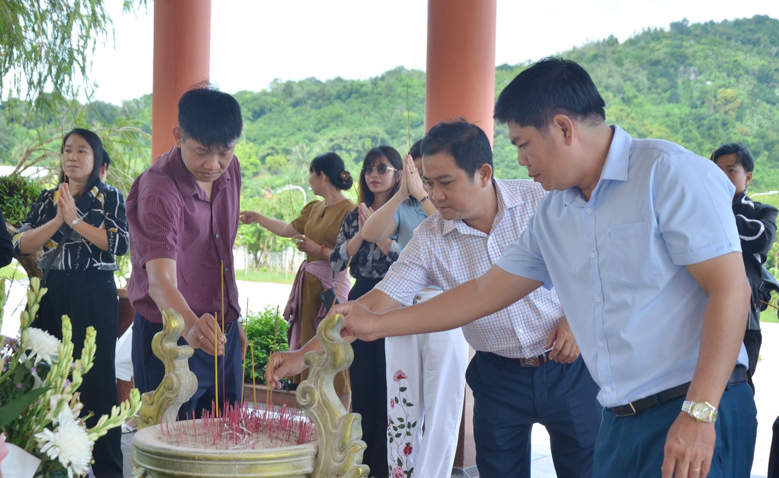 Lãnh đạo Báo và Phát thanh - Truyền hình tỉnh An Giang và giảng viên, học sinh Trường Đào tạo, bồi dưỡng cán bộ khoa học và công nghệ thắp hương tưởng niệm tại mộ liệt sĩ, Anh hùng Lực lượng vũ trang nhân dân Phan Thị Ràng.