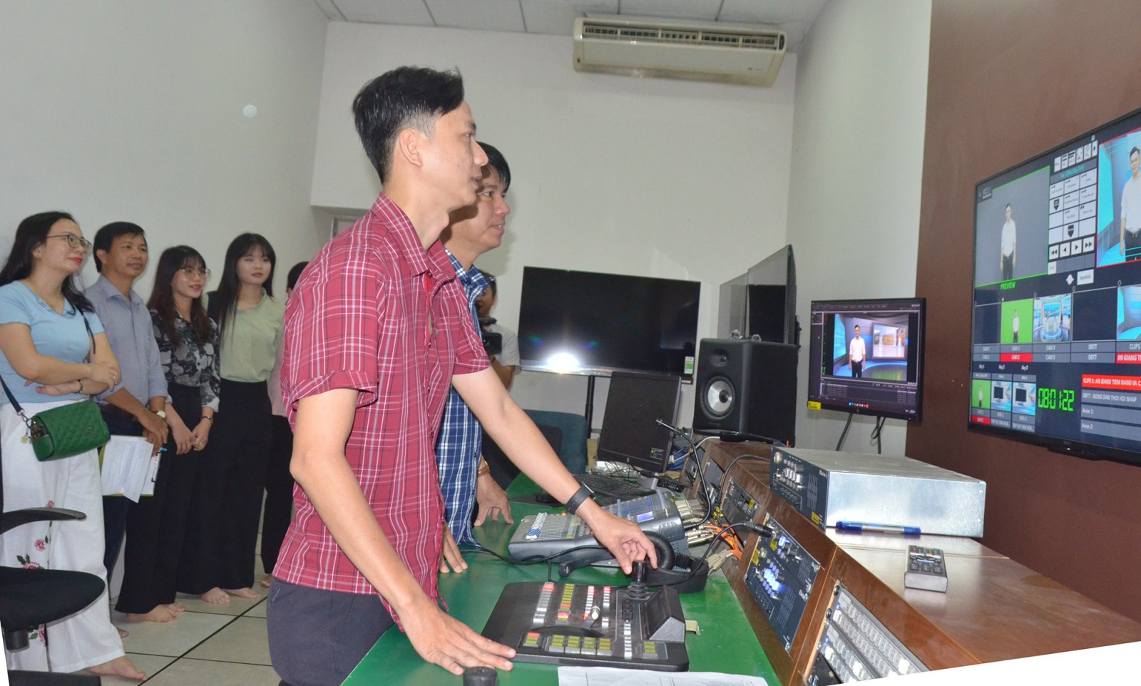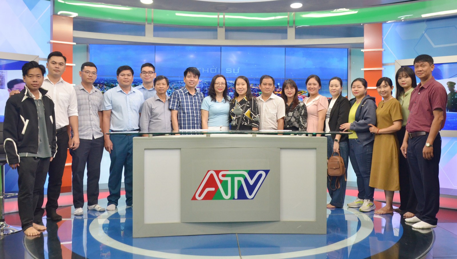 Tại cơ sở 1 của Báo và Phát thanh - Truyền hình tỉnh An Giang, giảng viên, học viên tham quan phim trường. Phim trường được đầu tư các hạng mục như không gian quay phim đa năng, công nghệ kỹ thuật số tiên tiến, trang thiết bị hiện đại và nguồn nhân lực chuyên môn cao để phục vụ sản xuất các chương trình truyền hình.