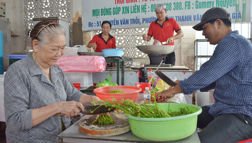 Ở tuổi 75, bà Nguyễn Thị Ri, ngụ phường Rạch Giá chọn tham gia các hoạt động từ thiện vừa giúp ích cho xã hội vừa tìm thấy niềm vui trong cuộc sống. Chồng mất sớm, bà Ri sống với vợ chồng con gái và cháu ngoại. Hiện, cháu ngoại bà đi làm ở TP. Hồ Chí Minh, vợ chồng con gái cũng đi làm cả ngày chỉ gặp mặt chút lát vào buổi trưa, buổi tối và cuối tuần. “Con cháu hiếu thuận, chăm sóc tốt cho tôi nhưng do công việc, tôi thường ở nhà một mình, ra vào thui thủi nên nhiều lúc buồn lắm! Tôi lớn tuổi, sức khỏe yếu, đi lại khó khăn nên không tự đi xa được, chủ yếu ở nhà làm bạn với chiếc tivi. Hơn 1 năm nay, gần nhà có tổ chức nấu bếp ăn từ thiện, tôi tham gia phụ việc theo khả năng nhờ vậy tôi gặp gỡ, trò chuyện được nhiều người, thấy tinh thần thoải mái, vui vẻ, cuộc sống có ý nghĩa hơn”, bà Ri nói.