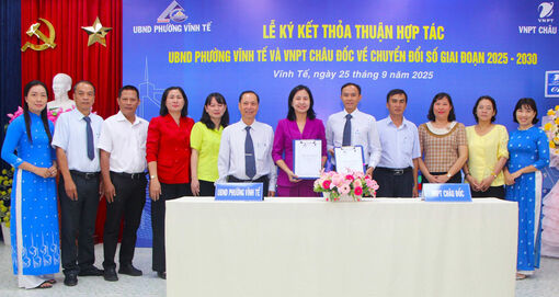 Chiều 25/9, UBND phường Vĩnh Tế (tỉnh An Giang) và VNPT Châu Đốc phối hợp tổ chức lễ ký kết thỏa thuận hợp tác chuyển đổi số giai đoạn 2025 - 2030.