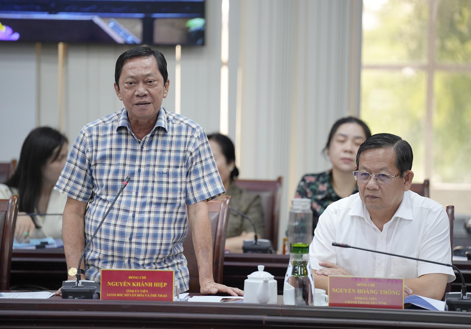 Tỉnh ủy viên, Giám đốc Sở Văn hóa và Thể thao tỉnh An Giang Nguyễn Khánh Hiệp phát biểu ý kiến tại cuộc họp.