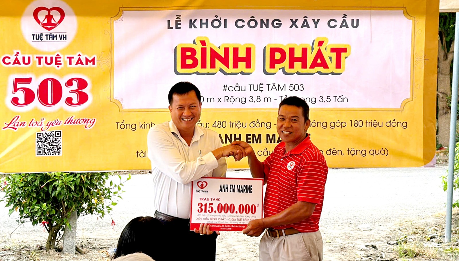 Tổng kinh phí xây dựng cầu 480 triệu đồng. Trong đó, Nhóm Tuệ Tâm VH (TP. Hồ Chí Minh) vận động hỗ trợ 315 triệu đồng, phần còn lại do chính quyền địa phương vận động đối ứng, người dân đóng góp ngày công xây dựng.