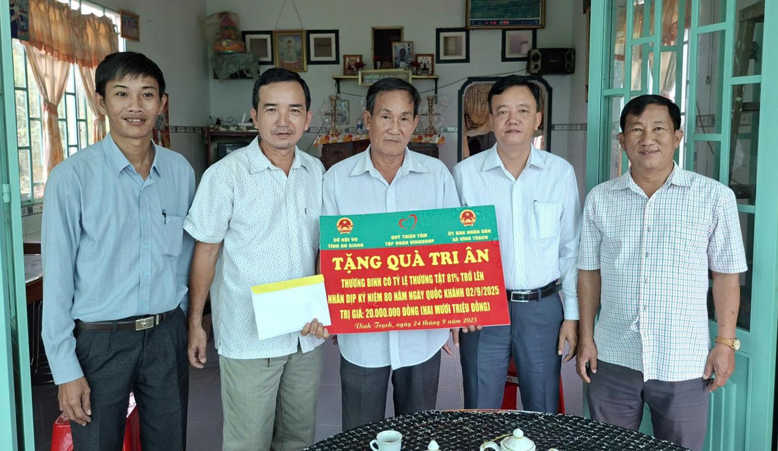 Ông Thắng là thương binh hạng nặng, có tỷ lệ thương tật 95%. Tại buổi đến thăm, Phó Chủ tịch UBND xã Vĩnh Trạch Phạm Văn Lập đã thay mặt Quỹ Thiện Tâm (thuộc Tập đoàn Vingroup) trao tặng phần quà trị giá 20 triệu đồng đến thương binh Thái Toàn Thắng.
