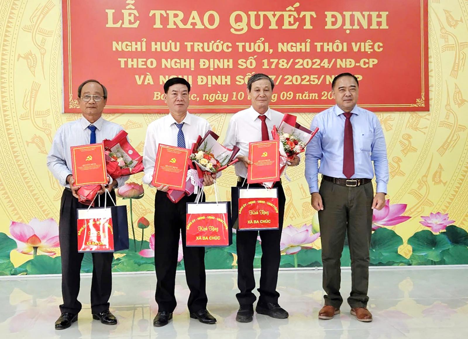 Trao quyết định nghỉ hưu, nghỉ thôi việc cho cán bộ xã Ba Chúc.
