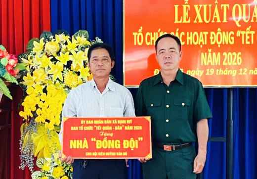 Tết Quân Dân năm 2026 với chủ đề “Đoàn kết Quân - Dân” tại xã Định Mỹ diễn ra từ ngày 19/12/2025 đến 29/1/2026, với nhiều hoạt động thiết thực, như tặng nhà, quà gia đình chính sách; tổ chức các hoạt động mừng Đảng, mừng Xuân...
