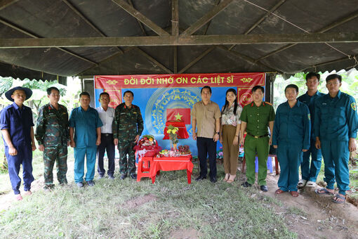 Bí thư Đảng ủy xã Kiên Lương Phan Đình Nhân thăm hỏi sức khỏe, động viên và chia sẻ những khó khăn, vất vả của cán bộ, chiến sĩ Đội K92 đang làm nhiệm vụ tìm kiếm, quy tập hài cốt liệt sĩ trên địa bàn xã.
