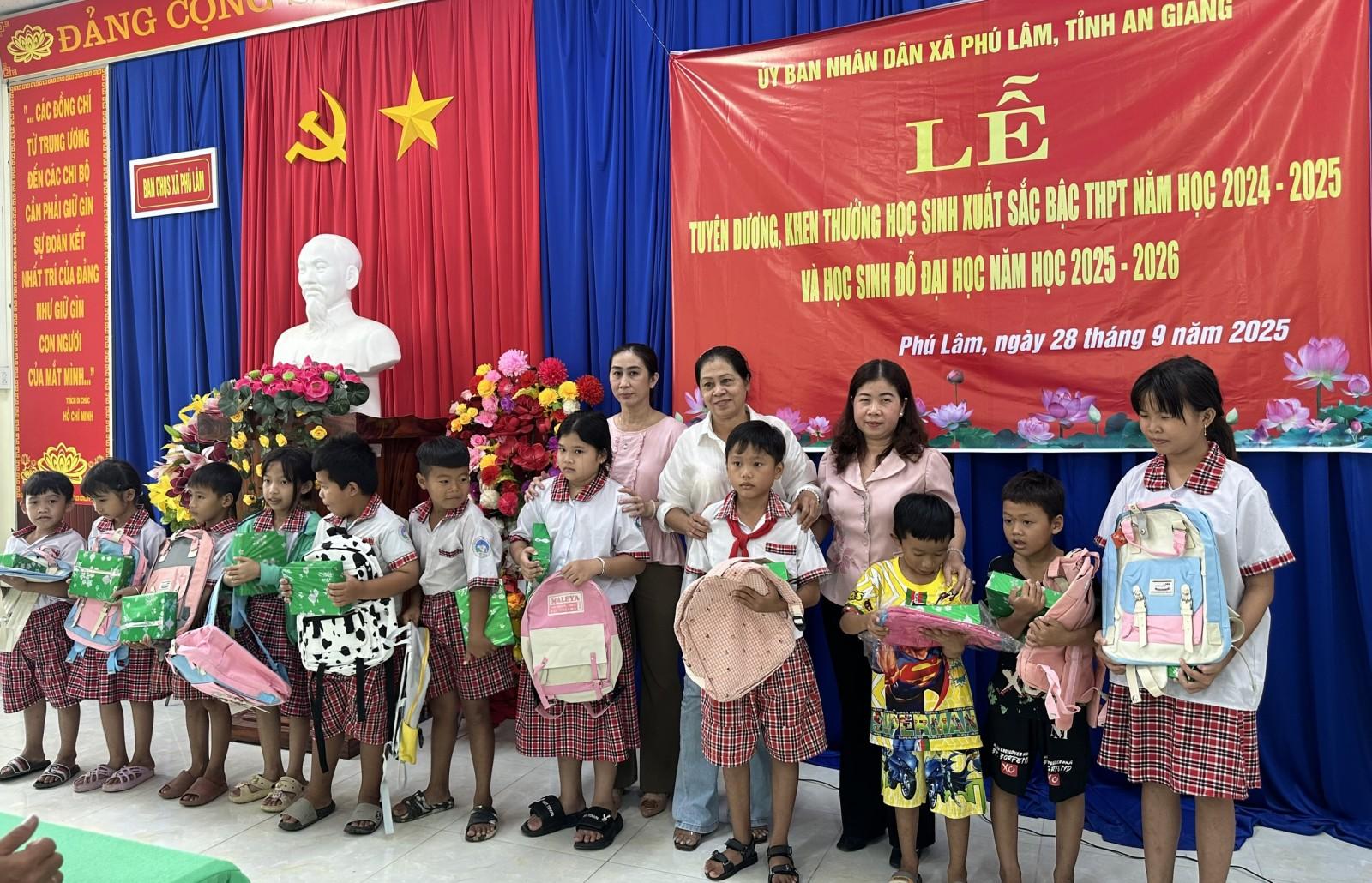 Dịp này, xã Phú Lâm trao 47 suất quà “Tiếp bước đến trường” cho học sinh có hoàn cảnh khó khăn ở cấp tiểu học và trung học cơ sở.