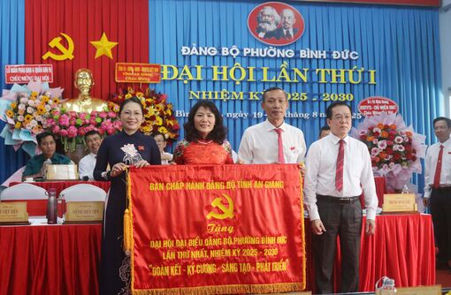 Đại hội công bố quyết định của Ban Thường vụ Tỉnh ủy An Giang chỉ định 33 đồng chí tham gia Ban Chấp hành Đảng bộ phường Bình Đức. Đồng chí Trần Thị Ngọc Diễm được chỉ định giữ chức Bí thư Đảng ủy phường nhiệm kỳ 2025 - 2030.