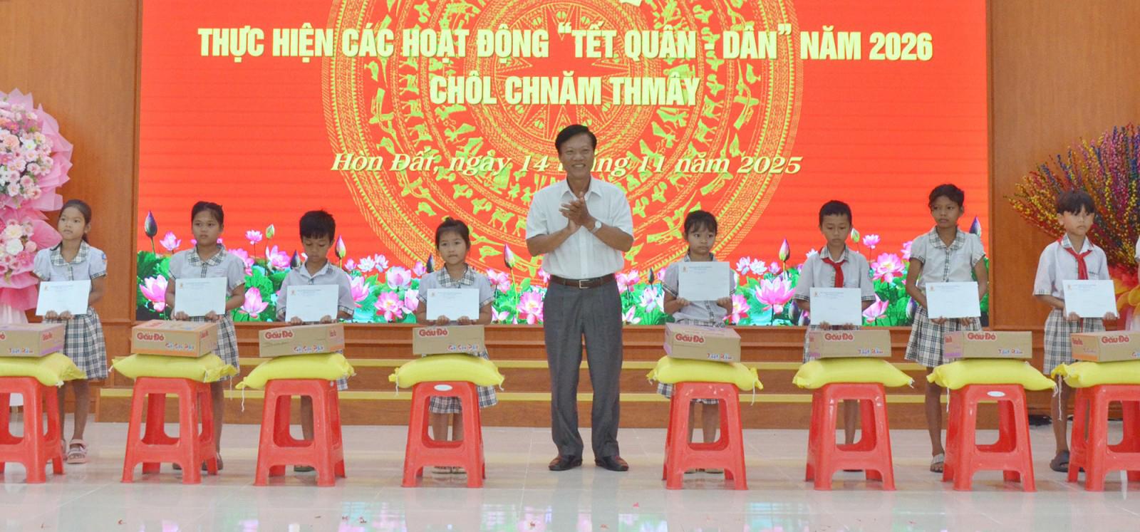 Sáng 14/11, tại xã Hòn Đất, Ban Chỉ đạo các hoạt động Tết Quân - Dân tỉnh An Giang tổ chức lễ xuất quân thực hiện các hoạt động Tết Quân - Dân năm 2026 Chôl Chnăm Thmây.