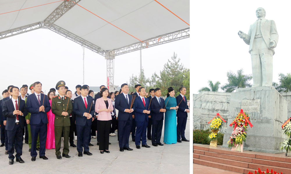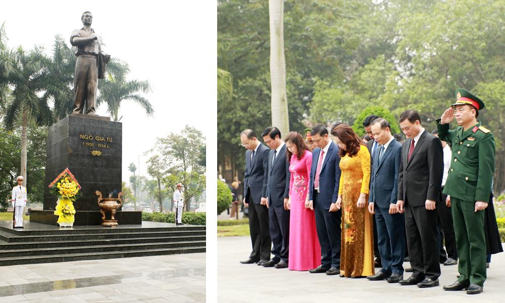 | Bí thư Tỉnh ủy Nguyễn Hồng Thái dẫn đầu Đoàn đại biểu tỉnh dâng hương tại Tượng đài đồng chí Ngô Gia Tự (phường Tam Sơn). |