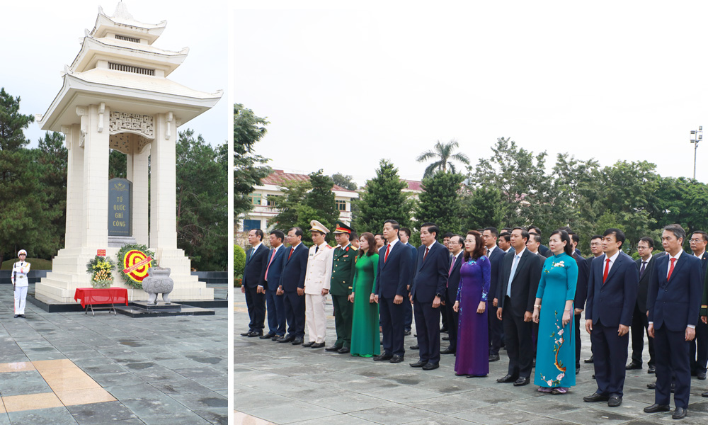 Các đồng chí lãnh đạo tỉnh và đại biểu dâng hương tại Đài tưởng niệm các Anh hùng liệt sĩ tỉnh. |