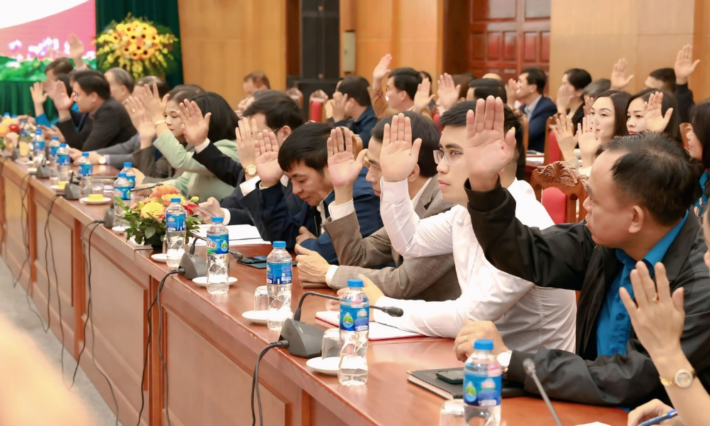 | Các đại biểu biểu quyết thông qua nội dung hiệp thương tại hội nghị. |
