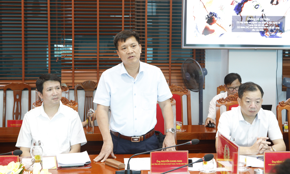 Đồng chí Nguyễn Giang Nam, Phó Tổng Biên tập Báo và Phát thanh, Truyền hình Bắc Ninh góp ý về công tác chuẩn bị Lễ kỷ niệm. |