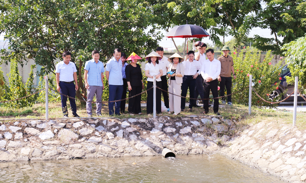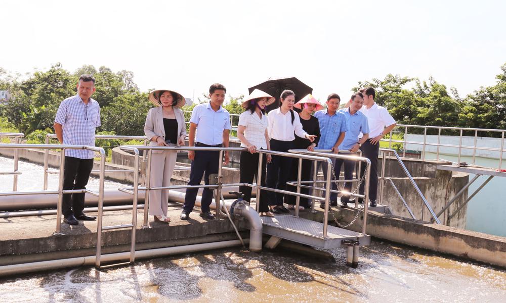 | Các thành viên Đoàn giám sát kiểm tra Nhà máy xử lý nước thải trong Khu công nghiệp Quế Võ III. |