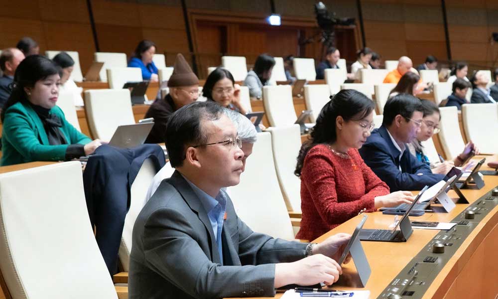 Các đại biểu Quốc hội trong phiên thảo luận tại hội trường, sáng 1/12.