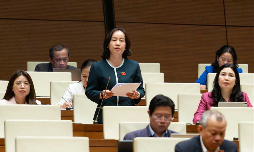 Đại biểu Nguyễn Thị Kim Anh trong phiên thảo luận tại hội trường, sáng 1/12.