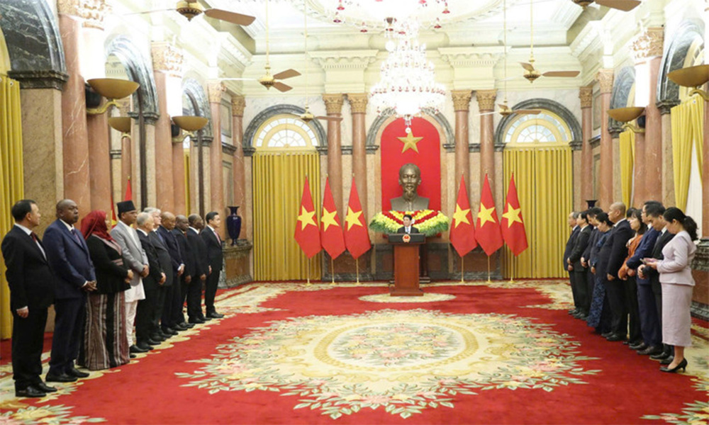 | Chủ tịch nước phát biểu tại Lễ trình quốc thư của Đại sứ không thường trú của các nước tại Việt Nam. |