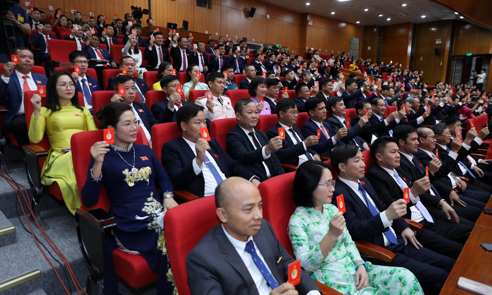 | Các đại biểu biểu quyết thông qua Nghị quyết Đại hội. |