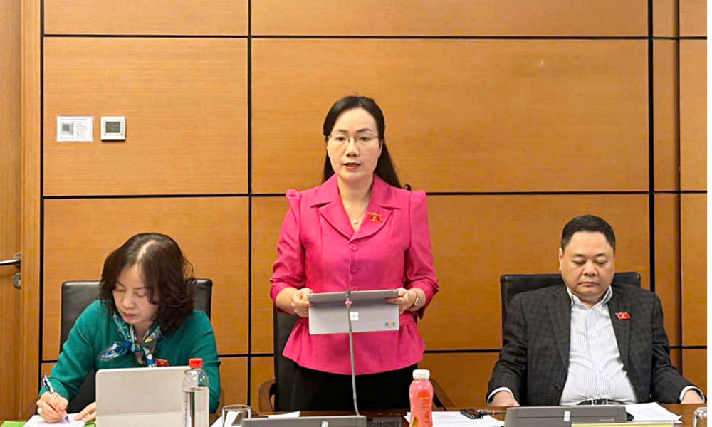 Đại biểu Quốc hội Đỗ Thị Việt Hà phát biểu trong phiên thảo luận ở tổ, chiều 4/12.