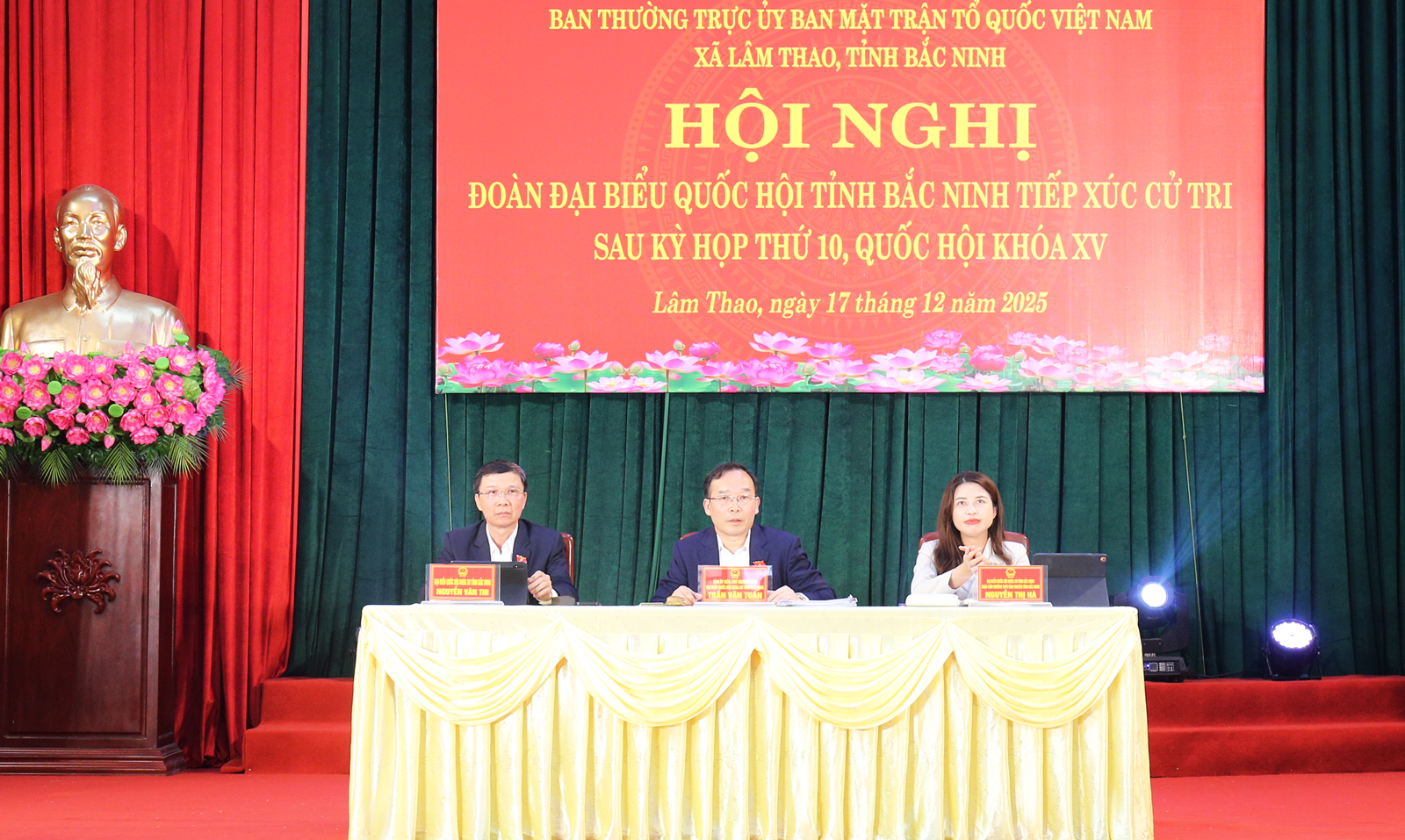 (BNP) – Chiều 17/12, Đoàn đại biểu Quốc hội (ĐBQH) tỉnh Bắc Ninh gồm các ông bà: Trần Văn Tuấn, Phó Trưởng Đoàn ĐBQH tỉnh; Nguyễn Văn Thi, ĐBQH khóa XV tỉnh và Nguyễn Thị Hà, Giáo viên Trường THPT Hàn Thuyên đã về tiếp xúc cử tri xã Lâm Thao sau Kỳ họp thứ 10, Quốc hội khóa XV.