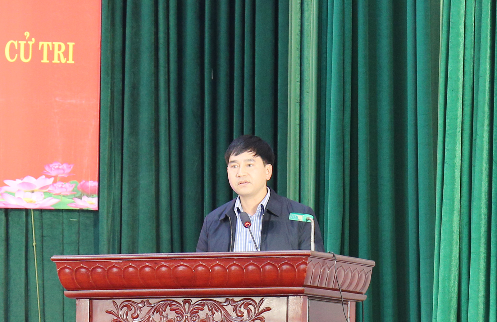 Phó Trưởng Đoàn ĐBQH tỉnh Trần Văn Tuấn phát biểu tại buổi tiếp xúc cử tri.