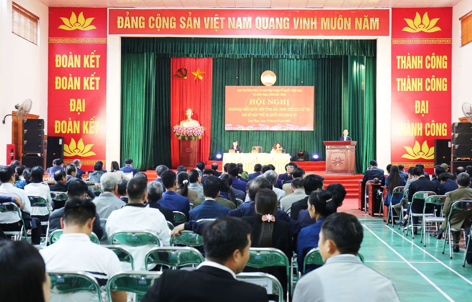 Phát biểu tại buổi tiếp xúc, thay mặt Đoàn ĐBQH tỉnh, Phó Trưởng Đoàn ĐBQH tỉnh Trần Văn Tuấn ghi nhận và đánh giá cao các ý kiến phát biểu tâm huyết, trách nhiệm của cử tri. Đồng chí khẳng định các kiến nghị của cử tri phản ánh sát thực tiễn đời sống, liên quan trực tiếp đến quyền lợi chính đáng của Nhân dân, nhất là các vấn đề liên quan đến việc bồi thường, hỗ trợ khi thu hồi đất, giải phóng mặt bằng trên địa bàn xã Lâm Thao để triển khai dự án đầu tư xây dựng tuyến đường kết nối Sân bay Gia Bình với thủ đô Hà Nội; các quy định liên quan đến hỗ trợ làng nghề truyền thống; hỗ trợ nguồn lực cho các xã, khu dân cư đáp ứng yêu cầu chuyển đổi số; cơ chế, chính sách đặc thù đối với ngành giáo dục…